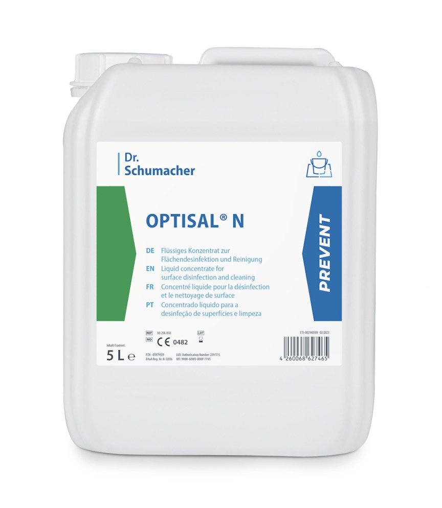 OPTISAL N je bezaldehydový koncentrát používaný k čištění a dezinfekci zdravotnických zařízení, neinvazivních zdravotnických prostředků a povrchů všeho druhu. Tento povrchový dezinfekční prostředek neobsahuje aldehydy ani fenoly, a proto má obzvláště příjemnou, svěží vůni. Optisal N lze tedy použít i tam, kde by nepříjemné pachy představovaly problém. Optisal má široké spektrum účinku a vysoký čisticí účinek.
