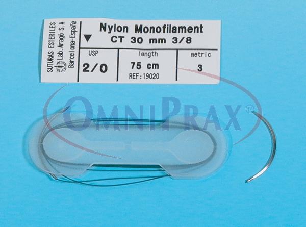 Popis: NYLON, jehla CT 20 mm 3/8, polyamidové vlákno 4/0, délka 75 cm