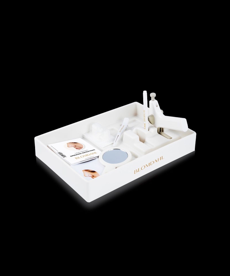 PIERCER UCHA BLOMDAHL, startovací souprava, 1 přístroj, 10 plastových náušnic krystal
