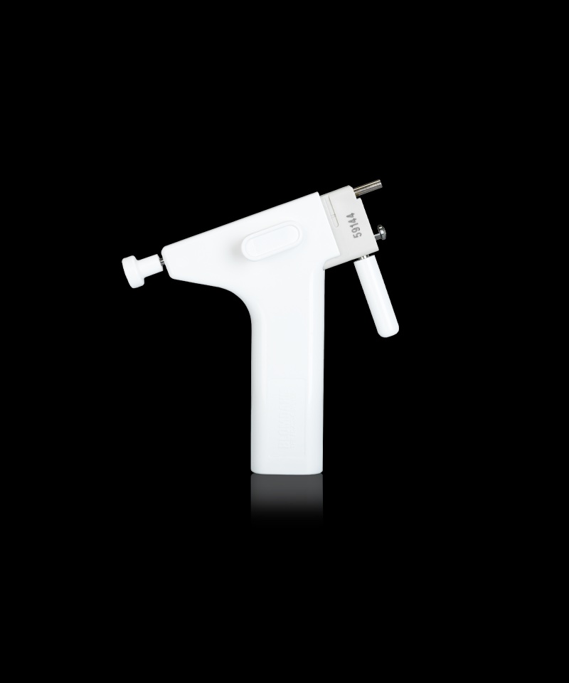 Přístroj pro provedení piercingu ucha, vhodný pouze pro náušnice o průměru hlavičky 4 a 5 mm.