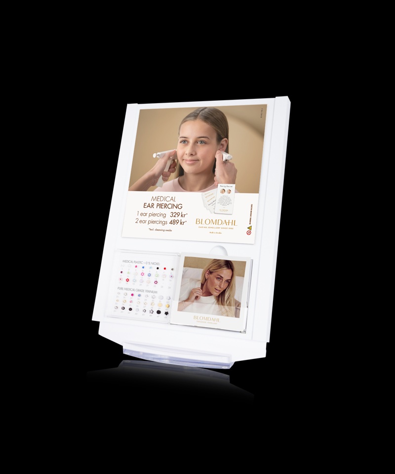 PIERCER UCHA BLOMDAHL, startovací souprava, 1 přístroj, 10 plastových náušnic krystal