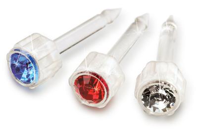 Průměr hlavičky 4 mm, délka dříku 6 mm. Tyto náušnice je možno použít pouze s přístrojem Piercer.