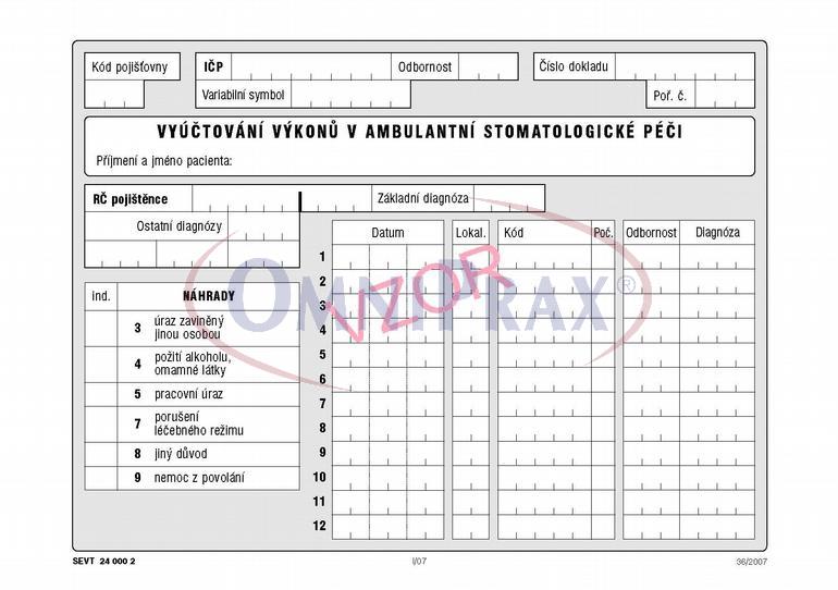 Vyúčtování výkonů v ambulantní stomatologické péči, list A5