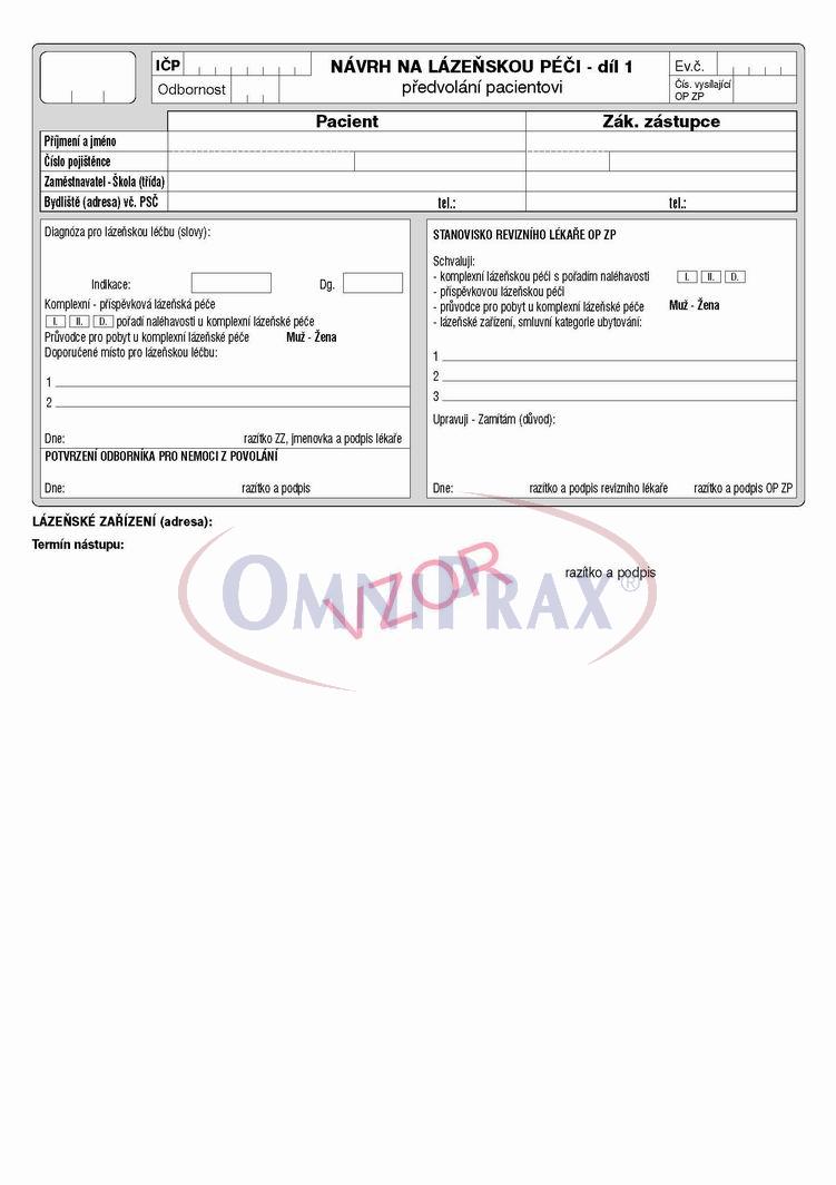 Návrh na lázeňskou péči, složka A4, 5 listů