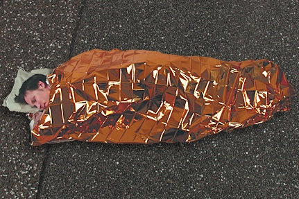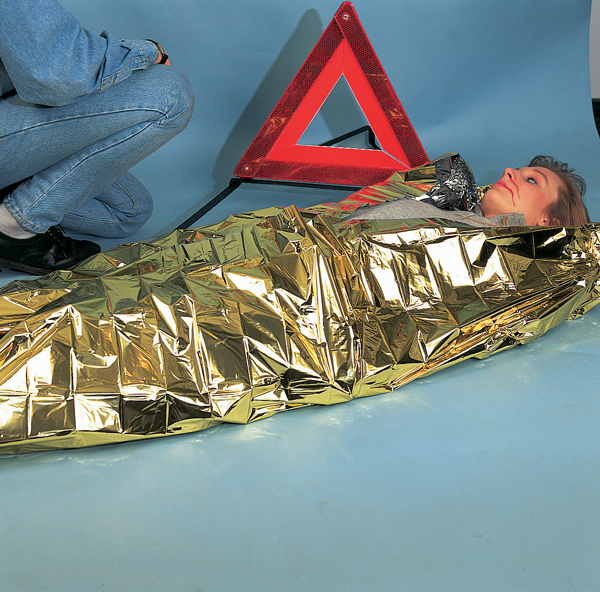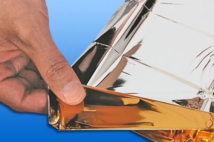 Záchranná fólie chrání postiženého před prochlazením a hypotermií, chrání i před slunečními paprsky a před vlhkostí.