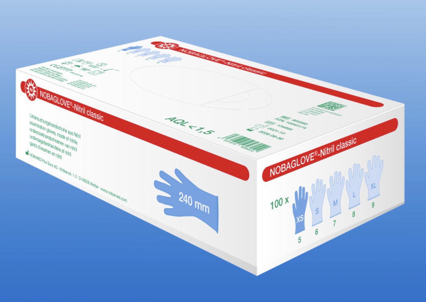 NOBAGLOVE NITRIL CLASSIC, nitrilové nepudrované vyšetřovací rukavice, modré, MEDIUM, 100 ks