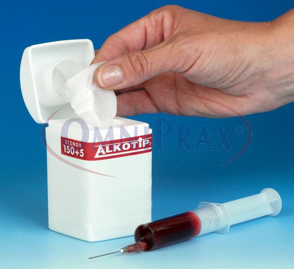 ALKOTIP ECOBOX, čisticí alkoholové čtverečky v zásobníku, 155 ks