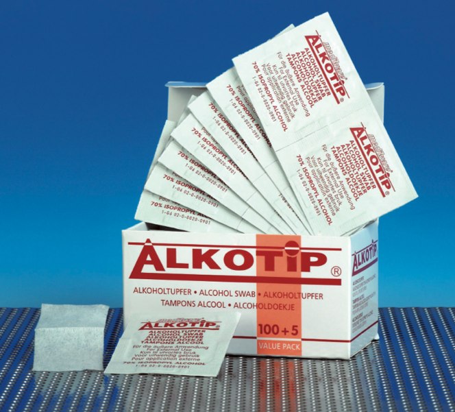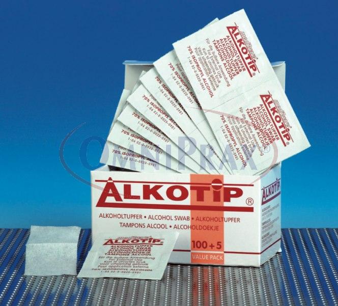 Alkotip čtverečky jsou napuštěny 70 % isopropylalkoholem a používají se k čištění kůže před venepunkcí a jinými drobnými zákroky.