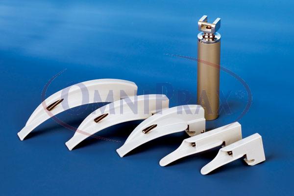 Cenově výhodné laryngoskopy z plastu, standardní osvětlení ve lžíci, normovaný konektor.