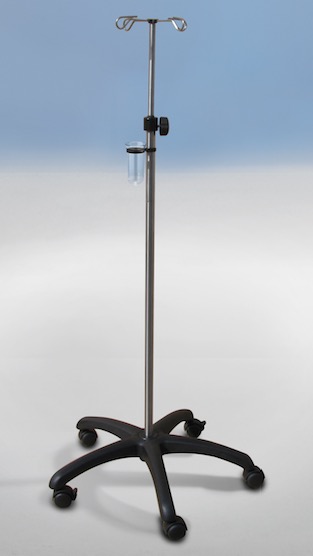 Pojízdný infúzní stojan.
