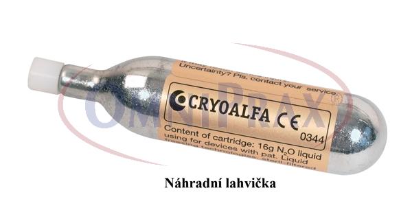 Lahvička s 16 g N2O pro kryochirurgický přístroj Cryoalfa Lux a Cryoalfa Pen a pro kryokosmetický přístroj Cryoalfa Pen.