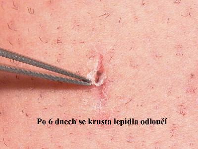 Ne. Po vytvoření nové rohové vrstvy na kůži (po 6 - 12 dnech) se krusta lepidla sama odloučí.