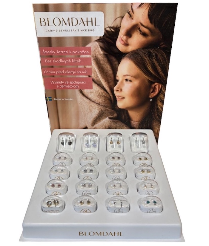 Nabídkový stojan BLOMDAHL pro lékárny, česky, pro 20 párů náušnic